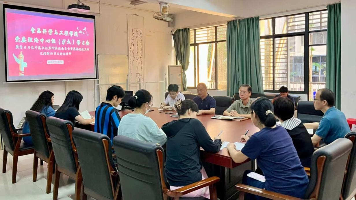。 以此次学习为契机,食品科学与工程学院将持续强化科研创新与成果转化效能,着力培养适应自贸港建设的复合型人才。全体教师党员要将讲话精神深度融入我院学生思想引领与就业指导全过程,引导青年学子扎根海南、服务自贸港建设,为打造具有国际竞争力的食品产业集群注入我院力量、贡献青春担当。