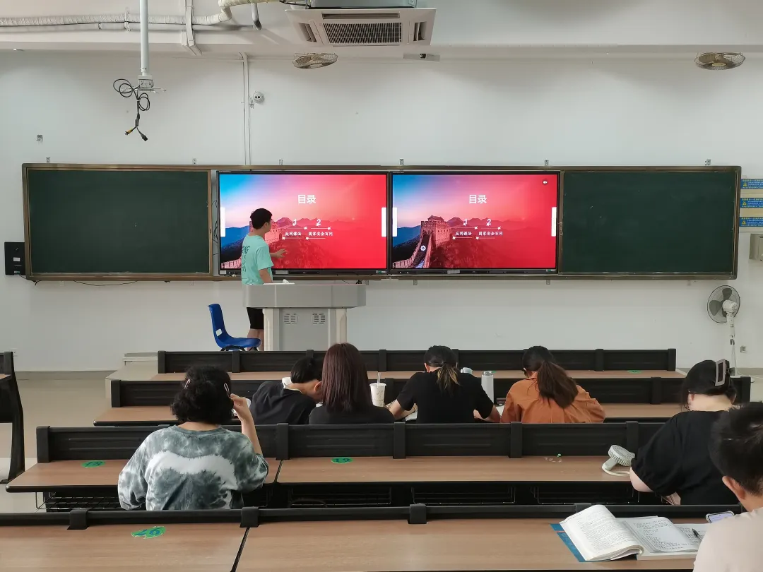 本次主题班会采取观看国家安全教育宣传片的方式进行讨论交流,以此来加深学生对总体国家安全观的思想认识,引导广大师生树牢“国家安全,人人有责”的安全理念。在会议的最后,各班团支书邀请我院同学关注公众号了解国家安全的相关知识,全院共330人关注公众号。