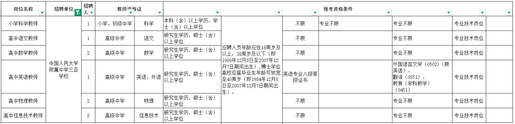 6. 英语等级:应聘高中英语教师岗位者,需提供英语专业八级证书。