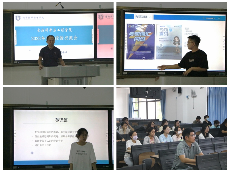 为加强学风建设工作,培育良好学风,5月10日,食品科学与工程学院举办2023年考研经验交流会,本次交流会旨在帮助即将参加2023年考研的学生更好地备考,提高考研录取率。
