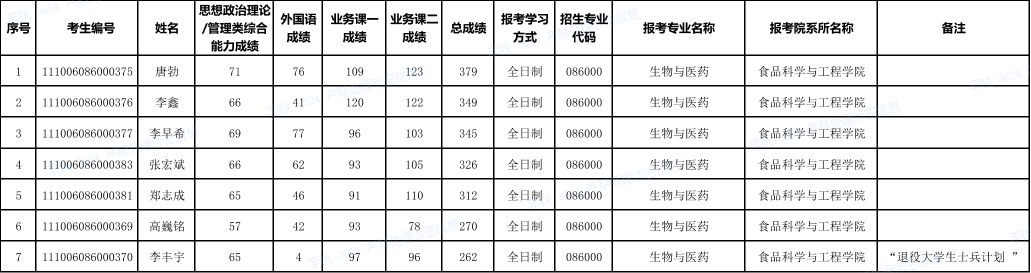海南热带海洋学院生物与医药专业2026年硕士研究生第一志愿考生复试名单