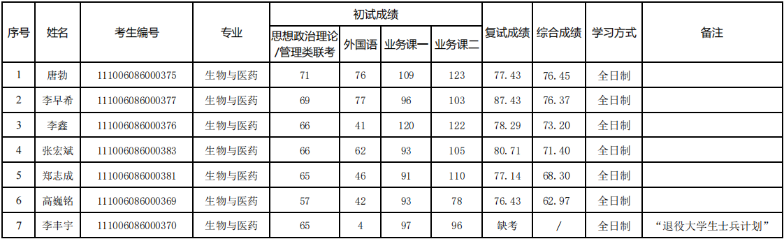 海南热带海洋学院生物与医药专业2026年硕士研究生一志愿考生复试成绩公示